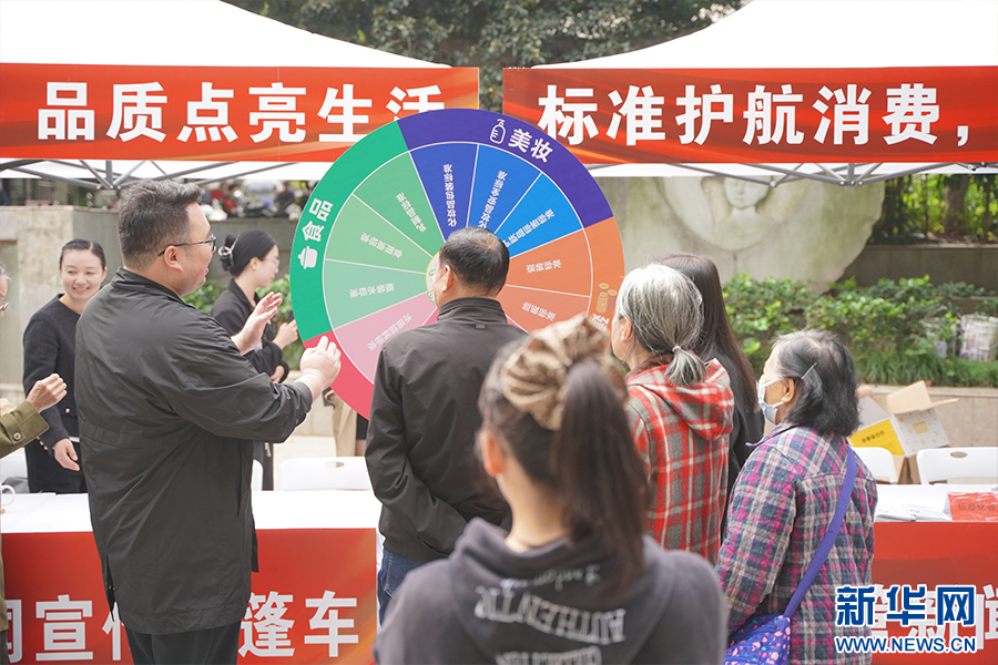 在答題區(qū)的“消費標準大轉盤”上,列出了食品、美妝、建材、家電等板塊延伸出的12個題目,聚焦衣食住行各類標準。市民們通過轉盤隨機選擇問題,標準化領域專家和消費者權益保護專家在一旁及時答疑。