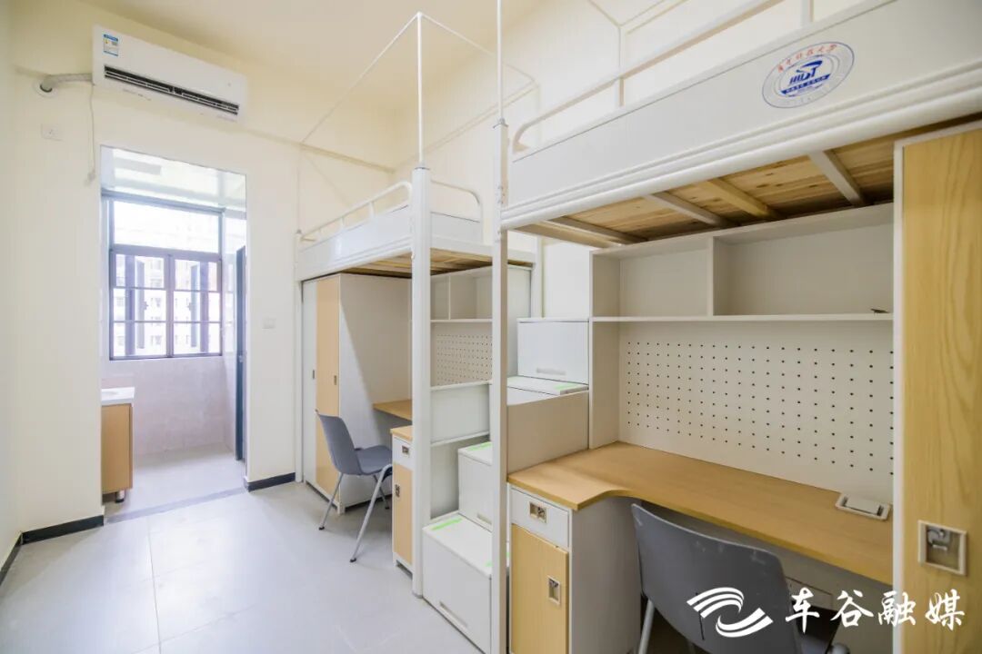軍山校區(qū)建有7棟學(xué)生宿舍樓。北區(qū)的2棟主要面向本科生,以四人間為主。南區(qū)的5棟主要面向研究生,碩士生宿舍為兩人間,博士生宿舍為八人套房。宿舍樓一層為公共空間與服務(wù)樞紐,設(shè)有接待前臺,提供寄存、維修、反饋等服務(wù),設(shè)有多功能學(xué)習(xí)與活動空間、自習(xí)室、研討室、黨團(tuán)活動室、咨詢室,滿足多種需求。二層及以上是住宿區(qū),電梯直達(dá)、功能完善,公共服務(wù)區(qū)配備洗衣機、烘干機、洗鞋機、直飲機。宿舍采用智能門鎖,上床下桌,獨立衛(wèi)浴,多功能學(xué)習(xí)桌搭配人體工學(xué)座椅,為學(xué)生提供舒適的學(xué)習(xí)住宿環(huán)境。