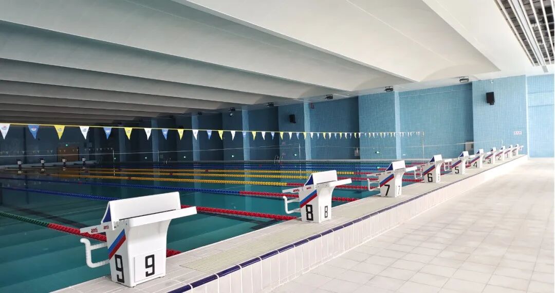 室外設(shè)有田徑場、籃球場、足球場、網(wǎng)球場等,室內(nèi)設(shè)有游泳館、羽毛球場、排球場、健身房等,可滿足師生日常體育運動和團(tuán)體活動需求。