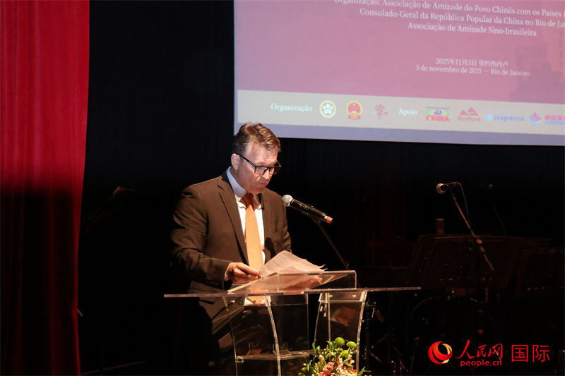 巴西—中國友好協(xié)會主席恩里克·達(dá)諾布雷加在活動中致辭。人民網(wǎng)記者 時元皓攝