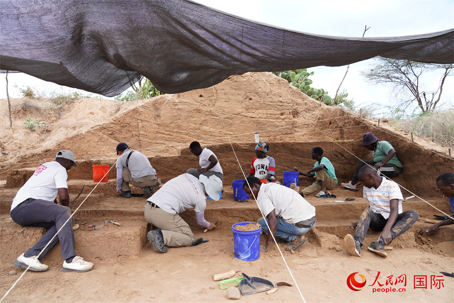 肯尼亞博戈里亞湖遺址第10地點(diǎn)發(fā)掘現(xiàn)場(chǎng)。人民網(wǎng)記者 黃煒鑫攝