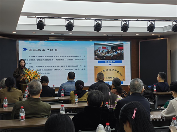 荊楚網(wǎng)(湖北日報(bào)網(wǎng))訊(通訊員 周璇)11月6日,武昌區(qū)糧道街道在曇華林社區(qū)舉辦第八期“書記大講堂”,以“從‘單打獨(dú)斗’到‘同心共治’:曇華林商戶聯(lián)盟的‘前世今生’”為主題,探索黨建引領(lǐng)下歷史文化街區(qū)可持續(xù)發(fā)展路徑。社區(qū)下沉單位黨員代表、社區(qū)工作者、小區(qū)黨支部委員及街道其他社區(qū)“兩委”成員代表共50人齊聚,共話基層治理良方。