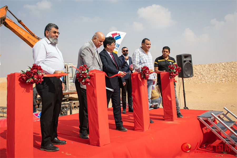 出席開工儀式的埃方嘉賓易卜拉欣·謝哈塔(中)致辭。人民網(wǎng)記者 薛丹攝