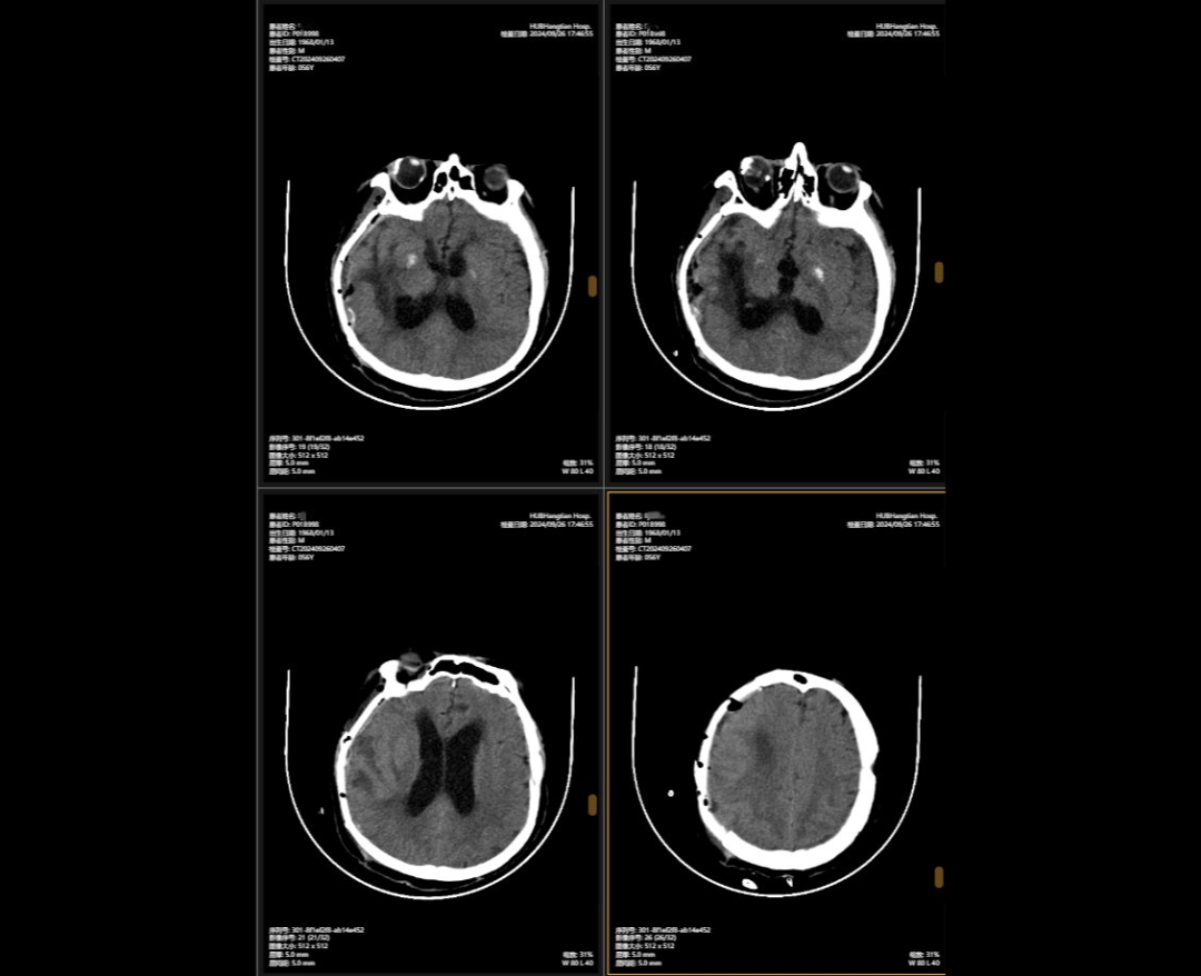 2024年5月,56歲的李先生(化名)不幸遭遇嚴重車禍,當場昏迷,生命垂危。他被緊急送往湖北航天醫(yī)院后,檢查結(jié)果讓所有人心頭一緊:他的頭部受到嚴重撞擊,不僅有多處出血,腦組織也有挫傷,甚至連呼吸心跳的“總司令部”——腦干都受了傷。除此之外,還有顱骨、頸椎和多處肋骨骨折,情況萬分危急。