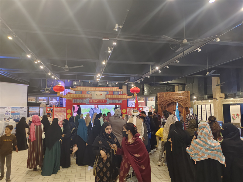 中國旅游文化周活動展區(qū)吸引大量當(dāng)?shù)孛癖婑v足參觀。中國駐巴基斯坦使館供圖