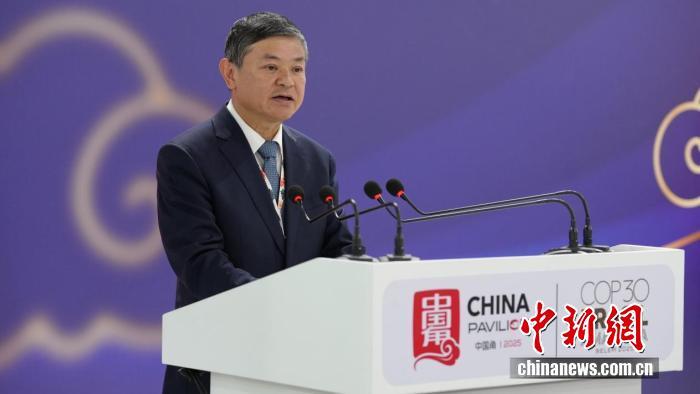 圖為COP30中國代表團團長 生態(tài)環(huán)境部副部長李高主持邊會致辭環(huán)節(jié)。中國新聞網(wǎng)記者 林勐男 攝