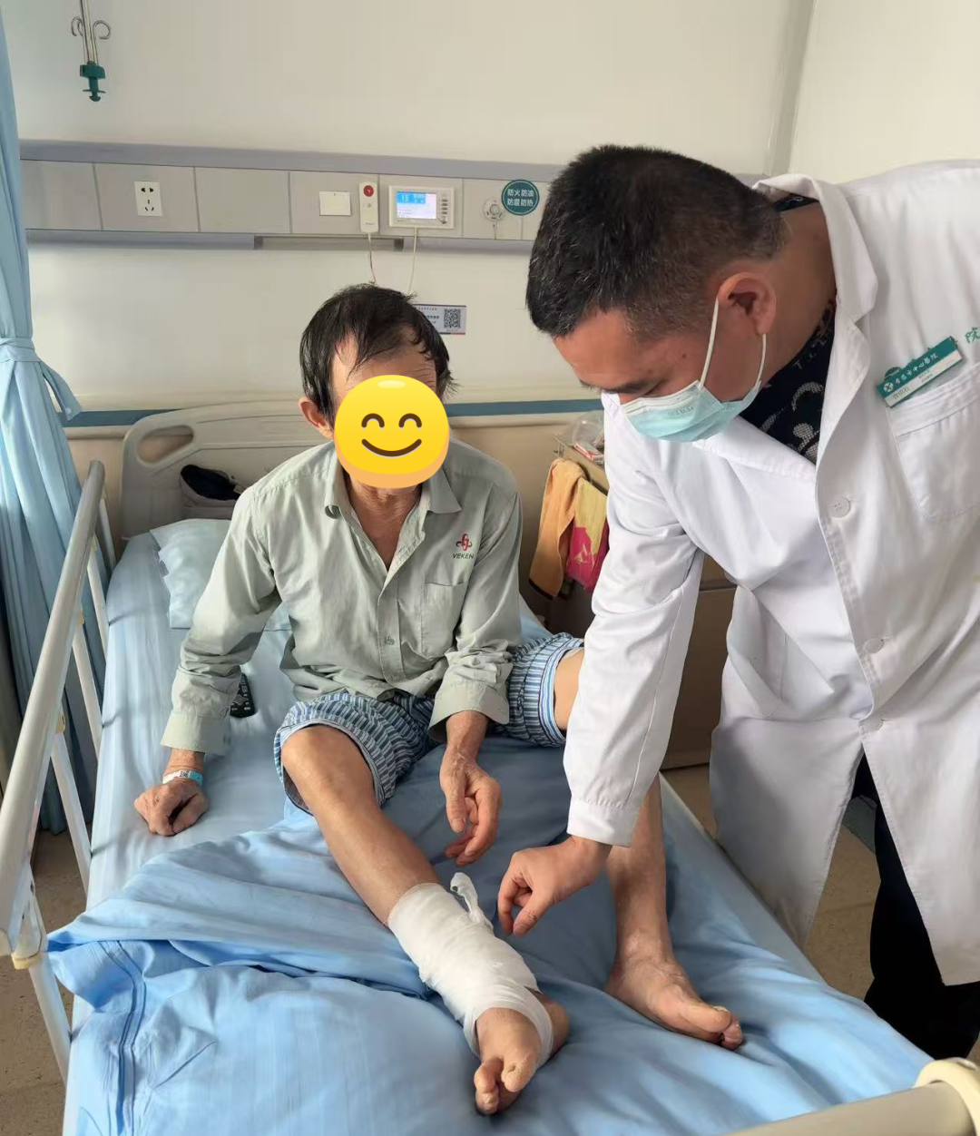 此前,程大爺因車禍導(dǎo)致右下肢大面積皮膚壞死伴跟腱部分明顯外露,經(jīng)該院急診外科多學(xué)科團(tuán)隊(duì)(MDT)的精準(zhǔn)救治,成功實(shí)現(xiàn)“爛腿”再生,康復(fù)出院并可自主行走。
