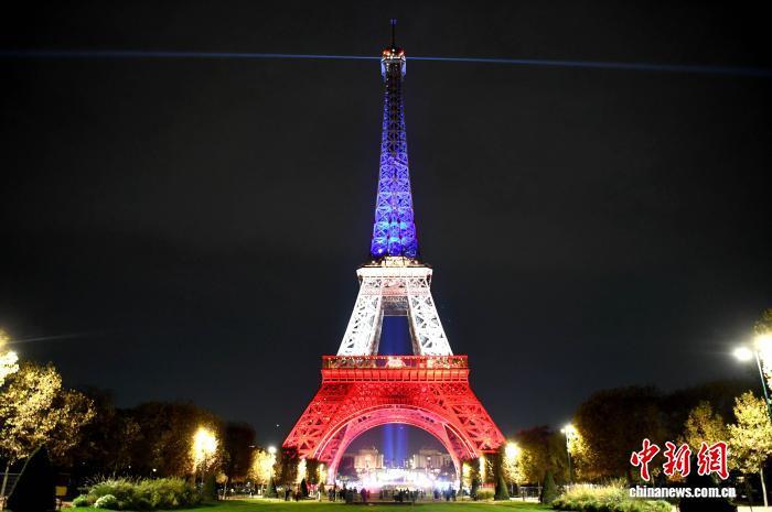 當(dāng)?shù)貢r(shí)間11月12日晚,巴黎埃菲爾鐵塔點(diǎn)亮象征法國(guó)的亮紅、白、藍(lán)燈光,悼念十年前巴黎系列恐怖襲擊的遇難者,表達(dá)國(guó)家團(tuán)結(jié)。 中新社記者 李洋 攝