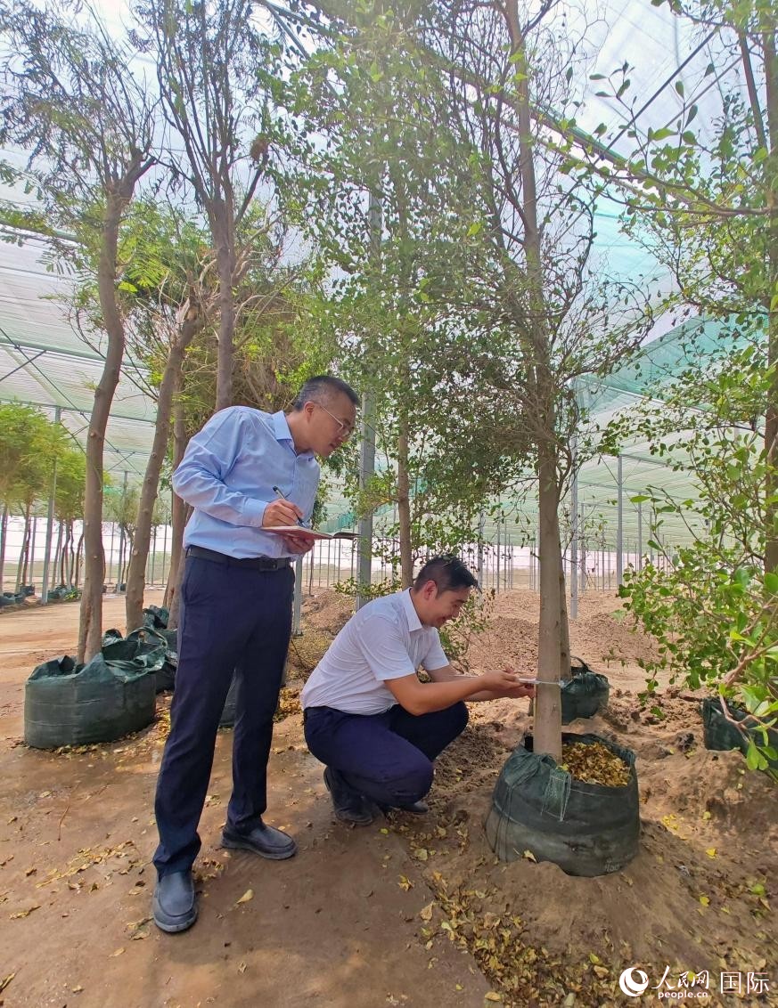 工作人員在檢查綠植生長情況。人民網(wǎng)記者管克江攝